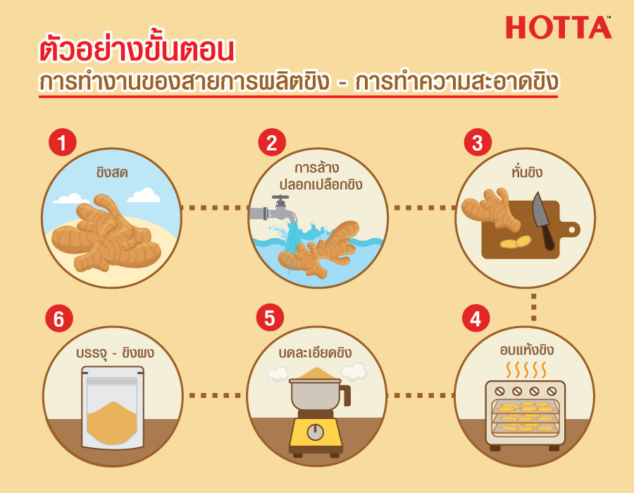 กระบวนการผลิตขิงผงแบบอ่านง่าย